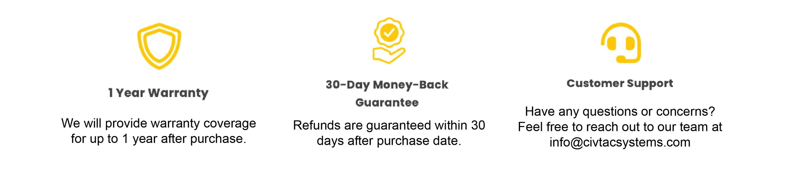 We have a 30-day refund policy, which means you have 30 days after receiving your item to request a refund. To start a refund request, you can contact us at info@civtacsystems.com and our support team will take care of you.